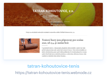 Najdete nás na adrese WWW.TATRAN-KOHOUTOVICE-TENIS.WEBNODE.CZ